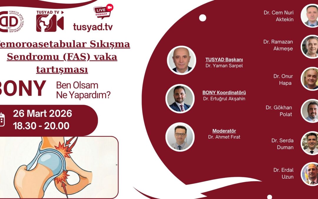 Ankle Injuries in Elite Athletes and Orthobiology Application Yayını İzlemek İçin Lütfen Parolayı Girin Hatalı Parola! Gönder En Son Yayınlar Femoroasetabular Sıkışma Sendromu (FAS) Vaka Tartışması İzlemek için tıklayın Vakanı Al Gel, 24.03.2026 İzlemek için tıklayın Tusyad Asistan Webinarları, 12.03.2026 İzlemek için tıklayın Dizde Ön Çapraz Bağ Dışı Bağ Yaralanmalarına Yaklaşım, BONY İzlemek için tıklayın Tusyad Asistan Webinarları, 17.02.2026 İzlemek için tıklayın Tüm Yönleriyle Menisküs Sempozyumu – Canlı Cerrahi, 28.02.2026 İzlemek için tıklayın Vakanı Al Gel: Omuz ve Dirsek Vakaları İnteraktif Olgu Tartışması İzlemek için tıklayın Ayak Bileklerinin Sessiz Katili Talus Osteokondral Lezyonları İzlemek için tıklayın Ortobiyolojide Sınırlar; Hukuk, Etik ve Bilimsel Gerçeklik İzlemek için tıklayın Her yönüyle posterior tibial eğim azaltıcı osteotomiler İzlemek için tıklayın Yaklaşan Yayınlar Ankle Injuries in Elite Athletes and Orthobiology Application İzlemek için tıklayın